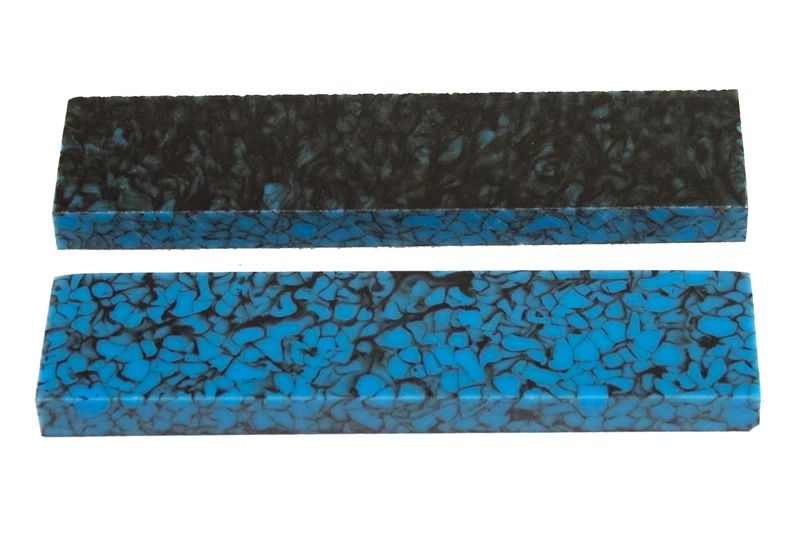 Shown finished with the thin top layer sanded off. Top blank is unsanded and bottom sanded.
