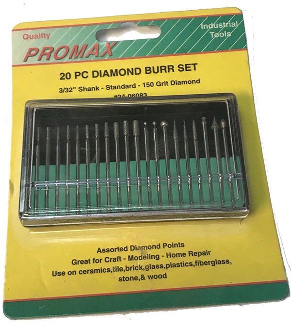 Diamond Burr Set – 20 pc 3/32″ (2.5mm) Shank – Medium 150 Grit – Promax
