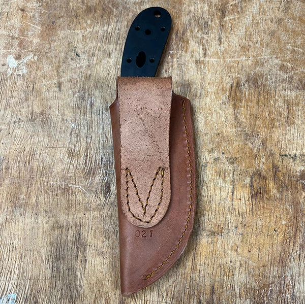 Made in USA 2″ opening and a 5 3/8″ length. High quality stitched thick leather, comes with belt loop.