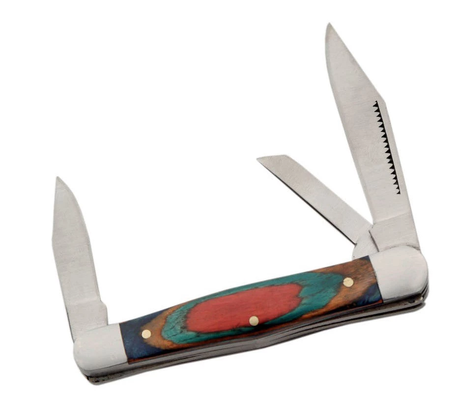 These folding knives are of traditional classic design that have been proven to function and last for decades. These are designs that everyone thinks of when they hear the words “pocket knife”. These are classy and functional knives. This is a traditional 3 blade Whittler design.