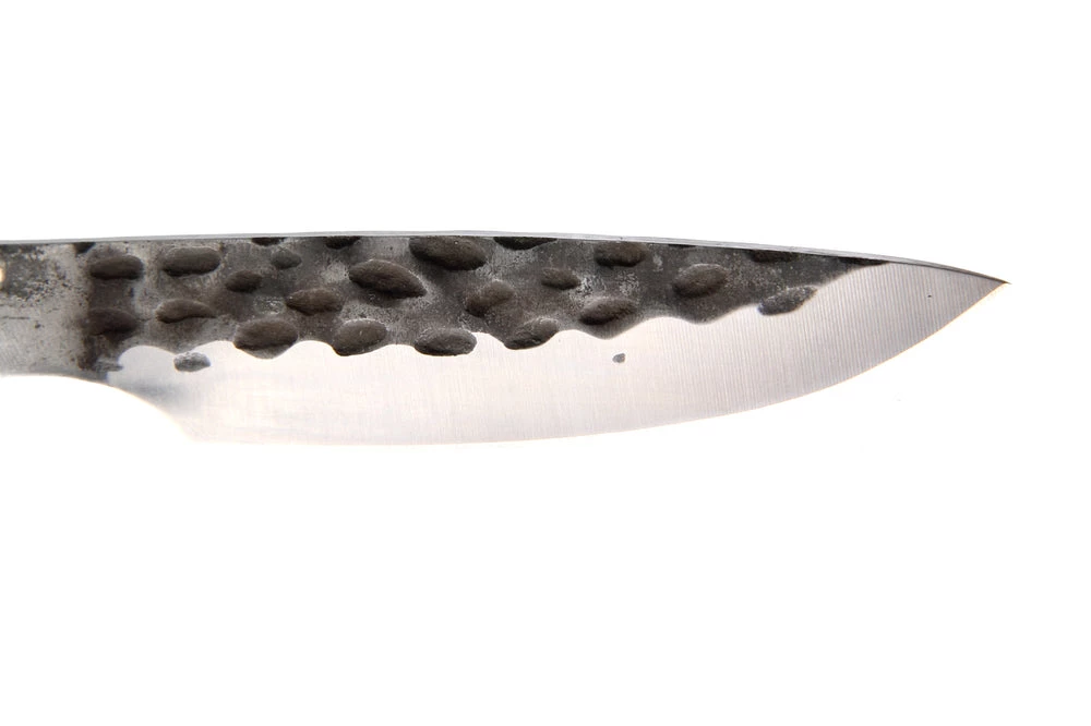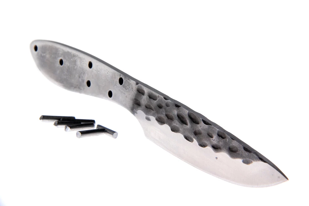 Great for the serious small game hunter or as a high end finished knife. Made from 9cr14MoV stainless. The hammered finish provides a rustic look. Includes 6 pins.