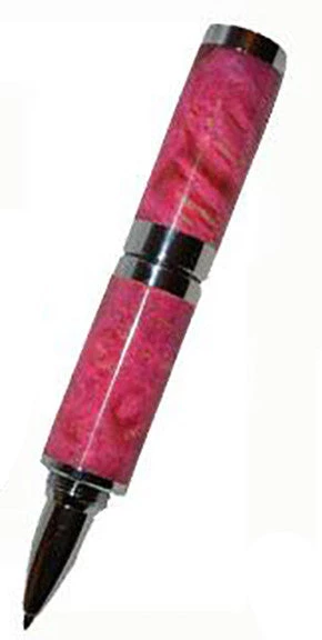 This Lipstick Pen makes an ideal gift for any woman on the go. Conveniently tucks away in her purse so she has it on hand at all times. The finished pen is only 3-3/8″ closed and 4-3/8″ long when in use. Cap secures with attractive threaded couplings. Uses mini refills, minimum blank size 3/4″ x 5″.