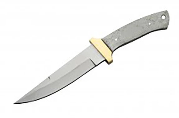 This blank has a modern twist on a traditional pattered Bowie knife. Slimmer blade makes this one heavy duty yet functional knife. Weather used for hunting or self defense it is sure to never let you down. The neo-classical design along with brass guard are sure to make this knife a stand out that will catch everyones eye.