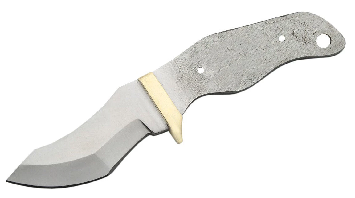 This blank has a very cool and unique blade style that will surely attract attention. Nice small sized, easy to handle, brass bolstered Skinner. Perfect for either small jobs or large ones.