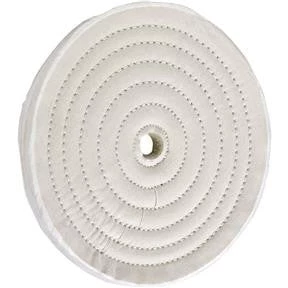 Soft and loosely sewn, this muslin wheel is a must when making the final polish on soft and delicate metals as well as musical instruments. Perfect for bringing out a deep, lustrous shine. Soft feather-edged muslin is concentrically stiched together near the center, leaving the outer edge to provide a fine polishing surface. Perfect for stainless steel, chrome, gold or silver. 8″ diameter x 40 ply x 5/8″ hole.