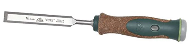 With their combination of comfortable, non-slip natural cork handle material and ultra-strong hard plastic, these chisels are ideal for both on site and in the workshop. The highly polished blade of high-alloy tool steel (approx. 62 HRC) is corrosion-protected by an ecological water-based stove-enamel finish. The oval handle provides a good grip and has roll-stop faces on both sides.