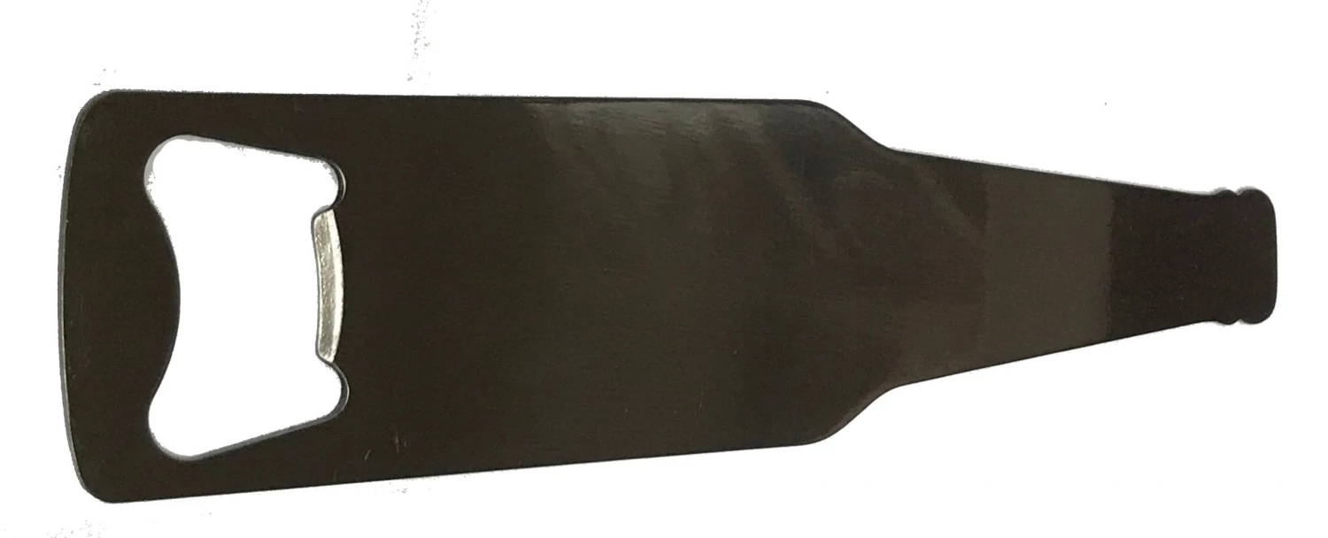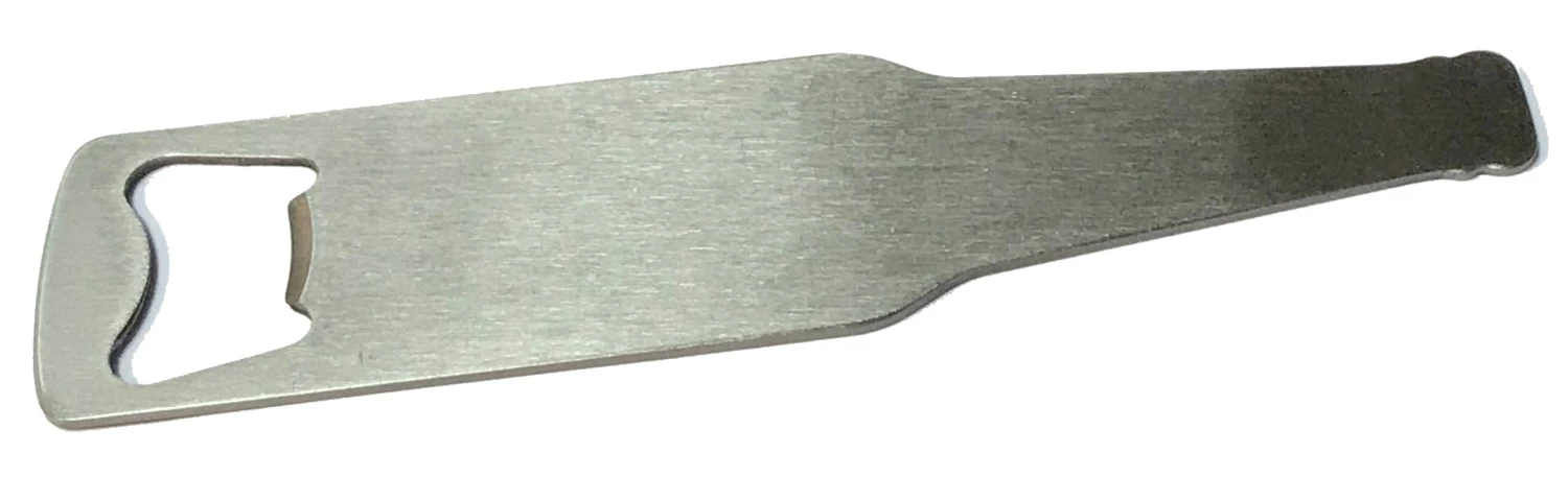 This slim Bottle Shaped Professional Bartender’s Bottle Opener Kit allows you to customize it with wood or acrylic knife scales. Standard sized knife scales will also work well for handles. You can either epoxy scales directly to the blank or you can easily drill pin holes and epoxy and pin the scales to the blank. Once completed, you’ll have a great bottle opener that slips neatly into your pocket when not in use. You can use the hole on the opposite end for hanging the bottle opener, or you can spin it on your finger like a pro. This item is perfect for custom laser engraving. Machined from stainless steel.