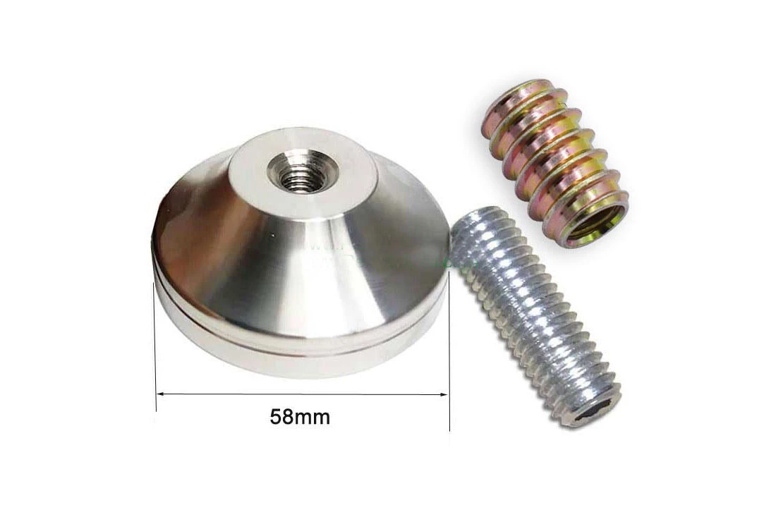58mm flat. A high quality stainless steel coffee tamper kits. Included a M8 threaded insert, which can screw into the wooden handle ad will be more solid. Make this lovely gift to your friends, family members, barista or coffee enthusiasts, you will be remembered with gratitude!