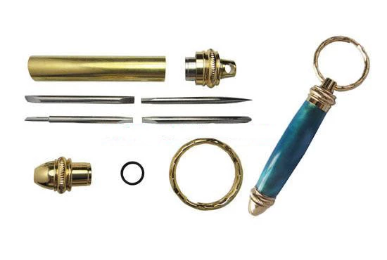 Gold Screwdriver Key Chain Kits. This kit includes two flat driver bits, a Philips bit , and a scratch awl. If you always wanted a tool kit on your key chain this is the perfect kit for you. This kit requires a 10 mm drill bit and bushings # 1449 Traditional