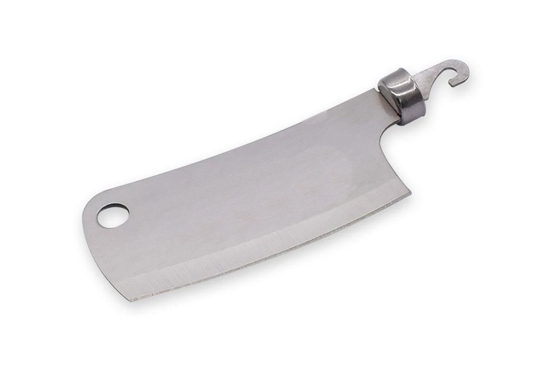 Stainless Steel Cleaver Style Cheese Knife Kit. Blade length: 108mm. This kit is both easy to make handles for and easy to assemble. This Kit creates an eye catching utilitarian finished product.