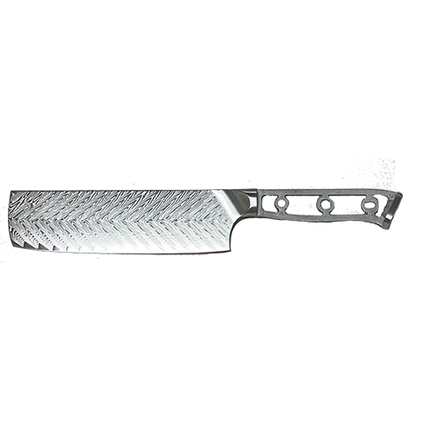Nakiri Knives are a Japanese style kitchen knife that looks like a cleaver, but is used for delicate and precise to perfectly making julienne veggies, slicing, dicing, mincing or chopping. It is the ideal veggie knife. Due to its straight blade it is best suited to up and down cuts nit rocking cuts like a chef knife. Furthermore, due to the thin straight edge blade it is NOT designed to be used as a cleaver (butchering meat) .